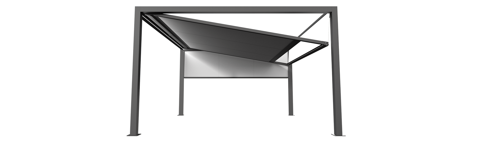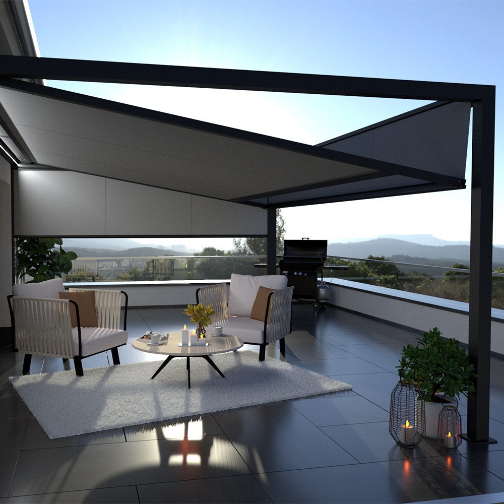 - Horizontale Dachmarkise mit integrierter Senkrechtmarkise