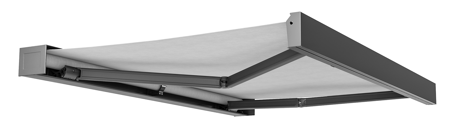 Gerade oder schräg? Mit dem Kippgelenkarm­lager mit patentierter selbstverriegelnder Hochschlagsicherung kann die Markisenneigung an den Armlagern stufenlos von 0 bis 40 Grad eingestellt werden.